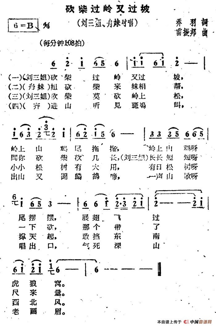 关于《砍柴过岭又过坡》曲谱的评论