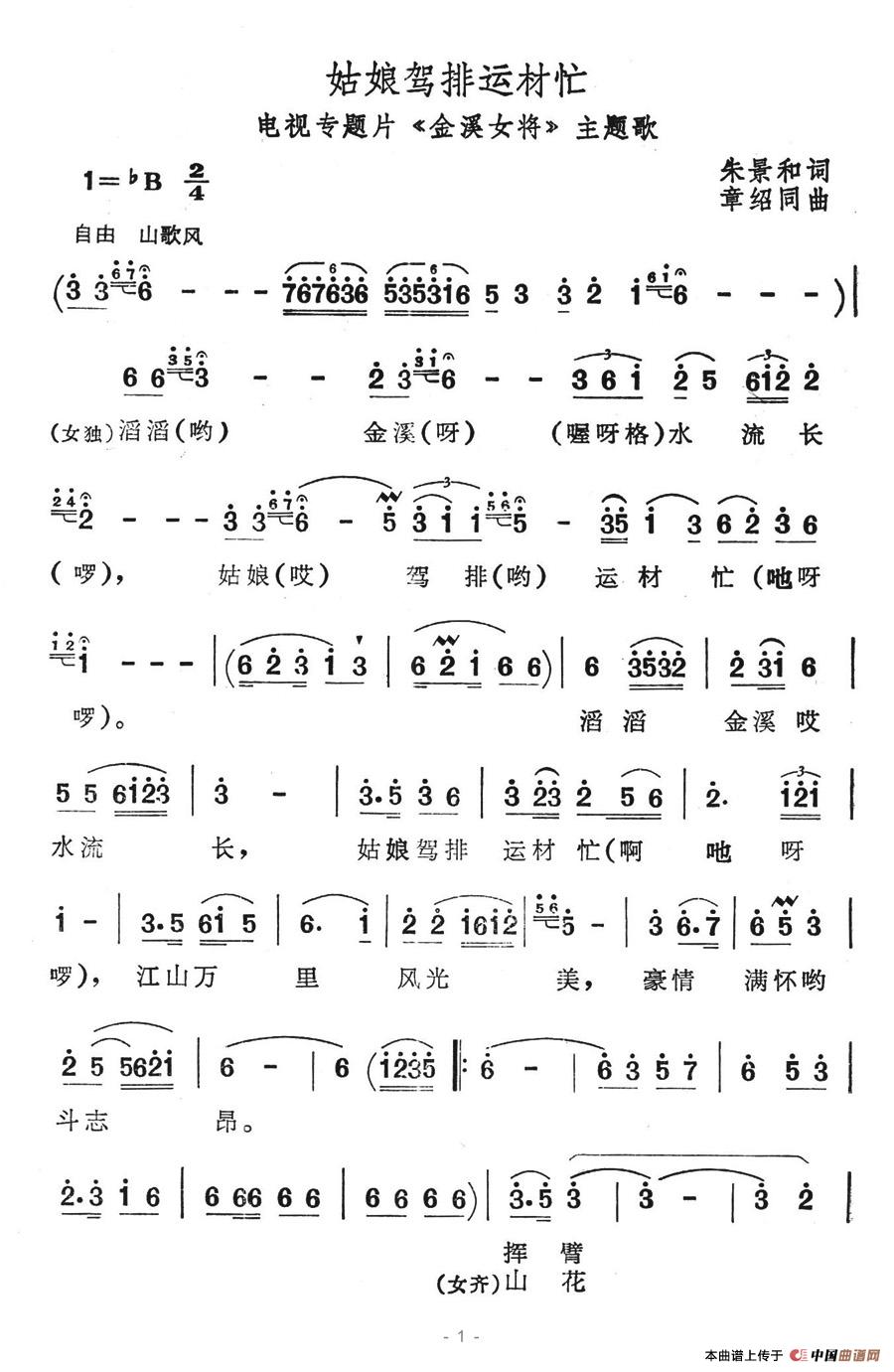关于《姑娘驾排运材忙》曲谱的评论