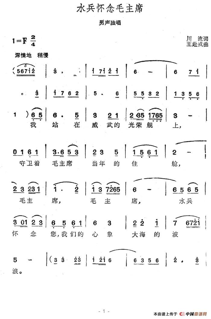 关于《水兵怀念毛主席》曲谱的评论