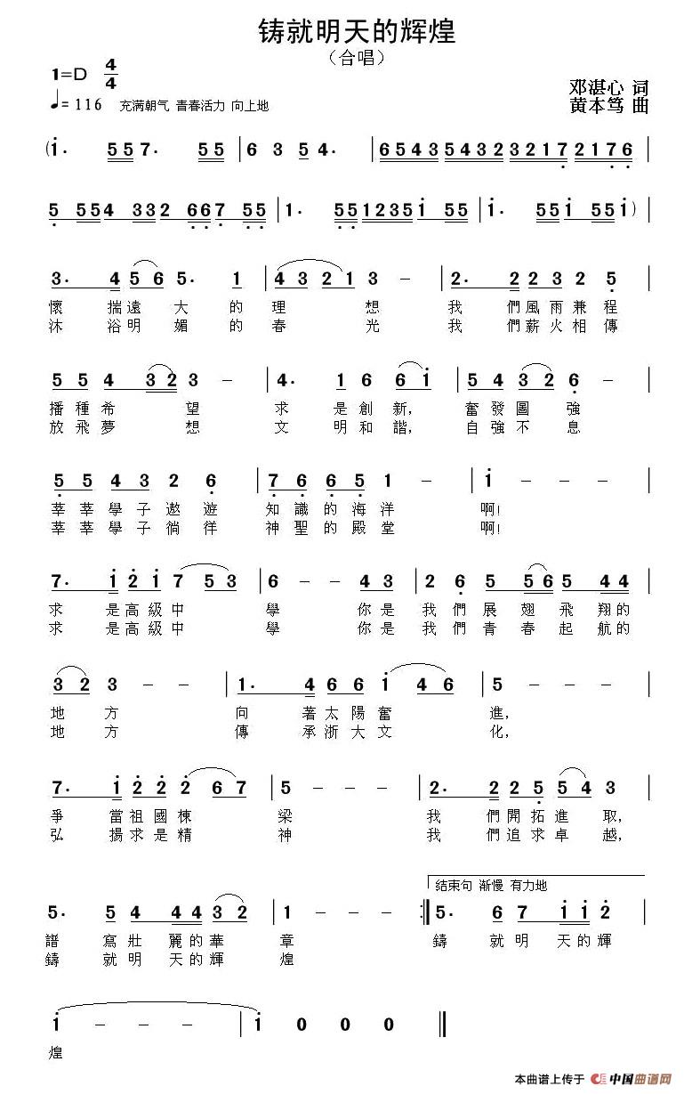 关于《铸就明天的辉煌》曲谱的评论