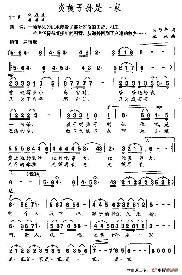 炎黄子孙是一家(方乃秀词 杨林曲)