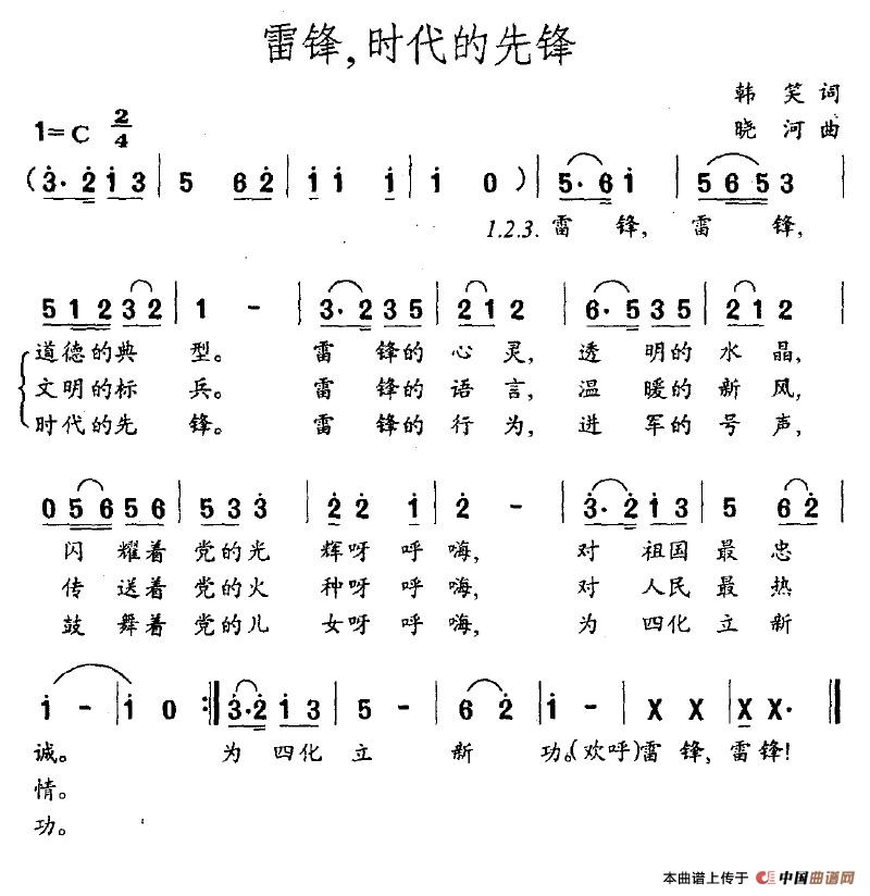 关于《雷锋,时代的先锋》曲谱的评论