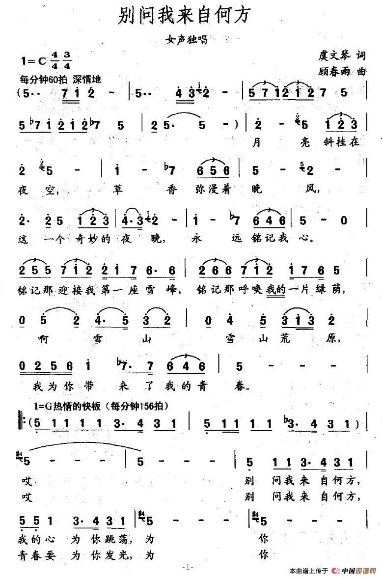关于《别问我来自何方》曲谱的评论