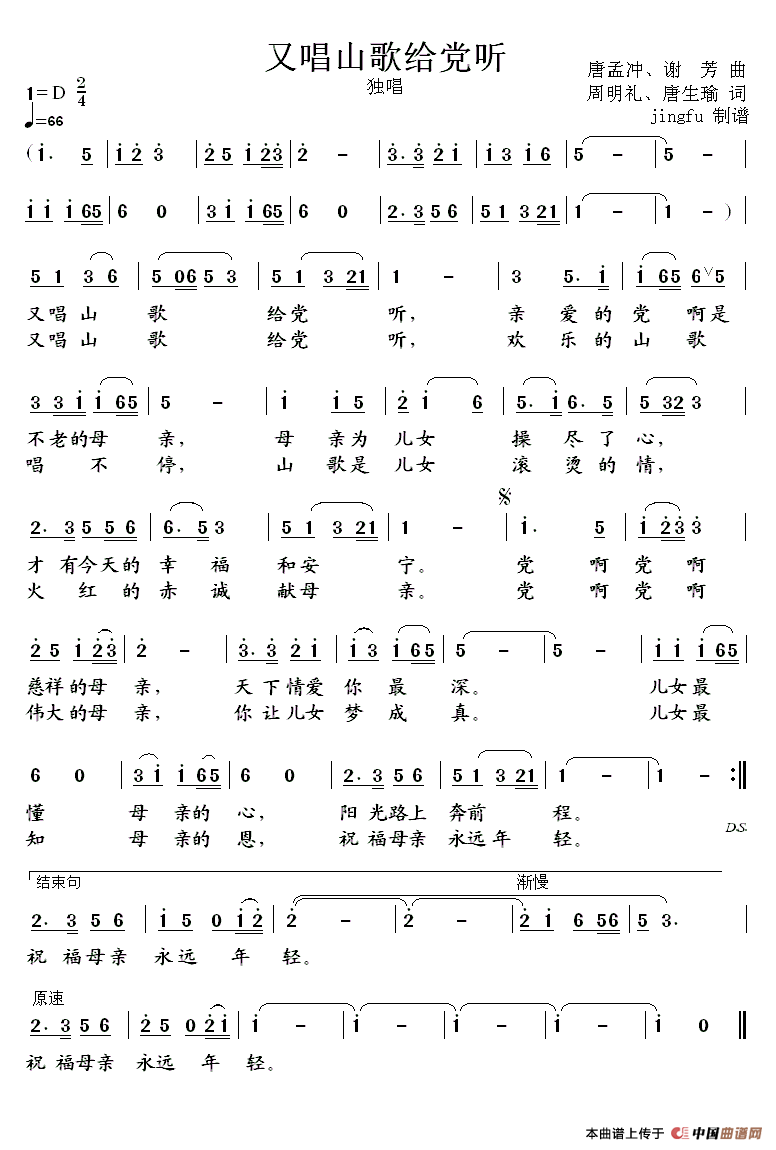 提示:在曲谱图片上单击右键,选择“图片另存为...”即可将曲谱保存到您的电脑中,打印时候可将图片插入到WORD中,调整合适大小打印即可。