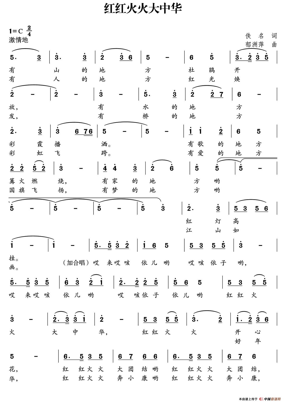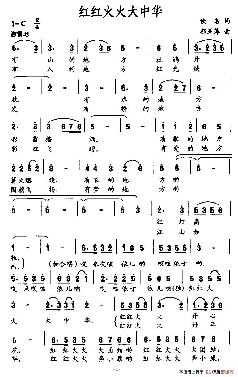 红红火火大中华(佚名词 郁洲萍曲)