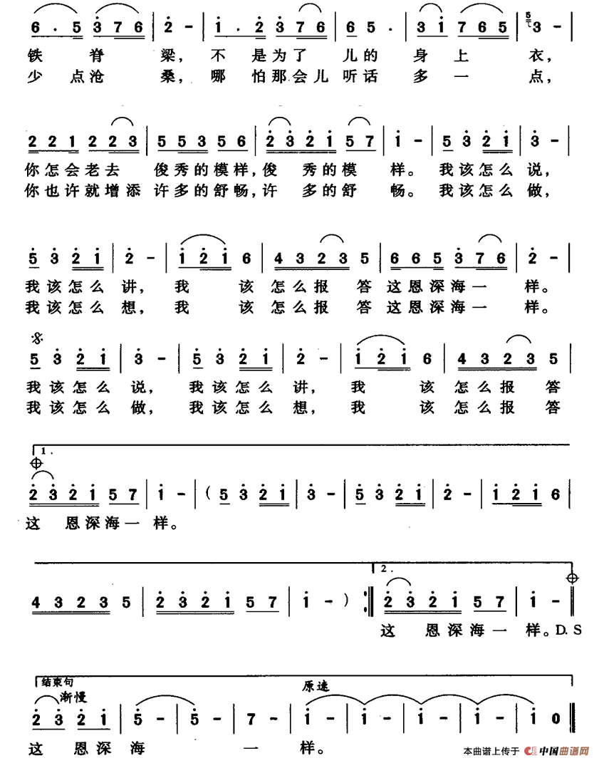 致谢:《中国曲谱网》衷心感谢作者老师馈赠原版歌谱!