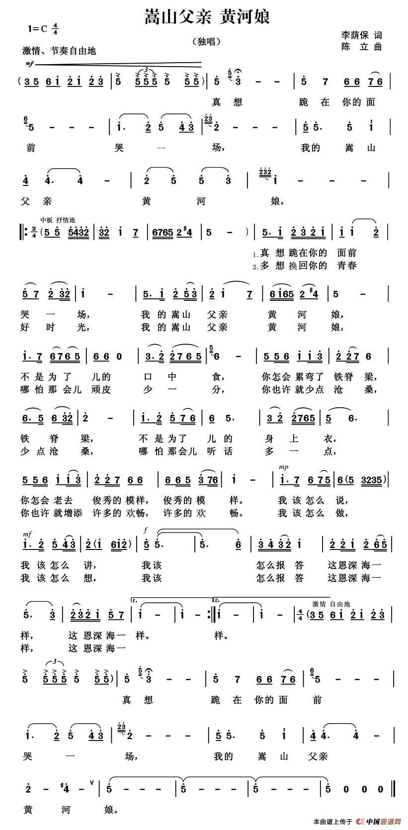 嵩山是中华的父亲山,黄河是中华的母亲河,是你们养育了我,我感谢你们,无以报答,谨以此歌祭之!