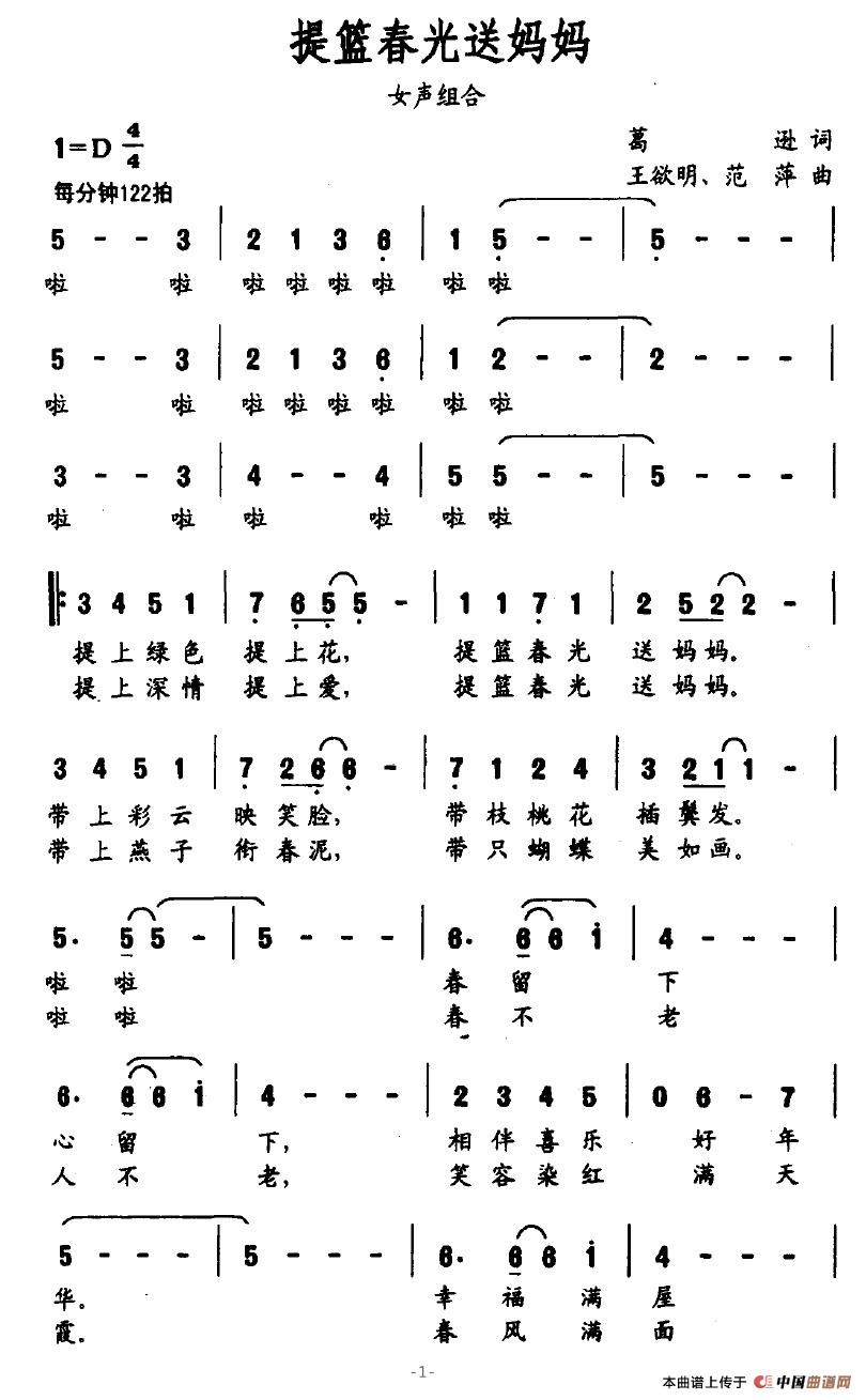 提篮春光送妈妈(葛逊词 王欲明、范萍曲)