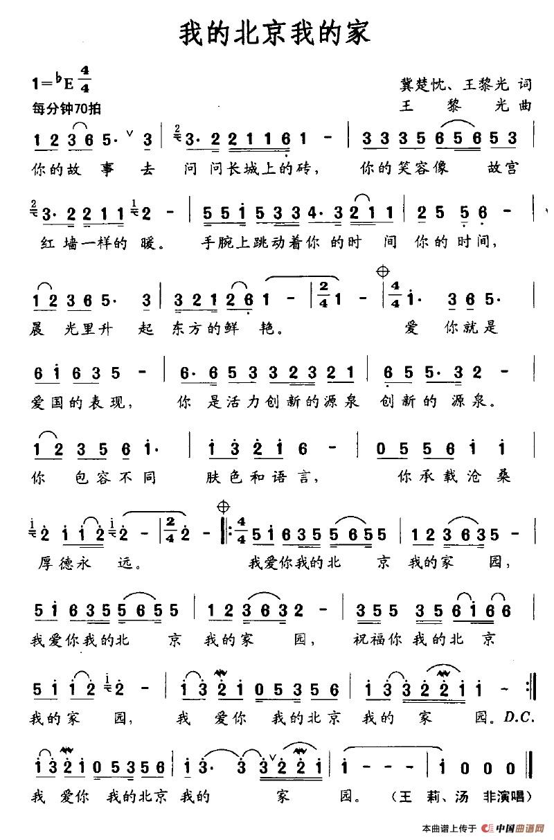 我的北京我的家(冀楚忱、王黎光词 王黎光曲)