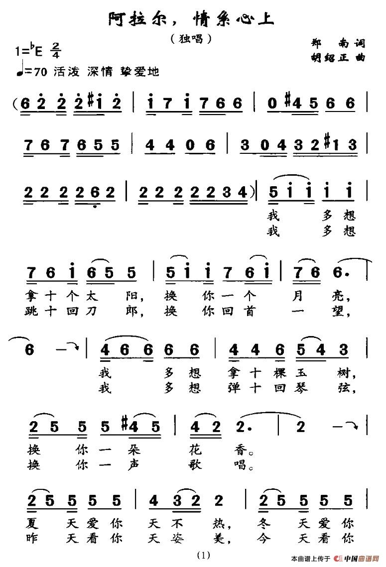 提示:在曲谱图片上单击右键,选择“图片另存为...”即可将曲谱保存到您的电脑中,打印时候可将图片插入到WORD中,调整合适大小打印即可。