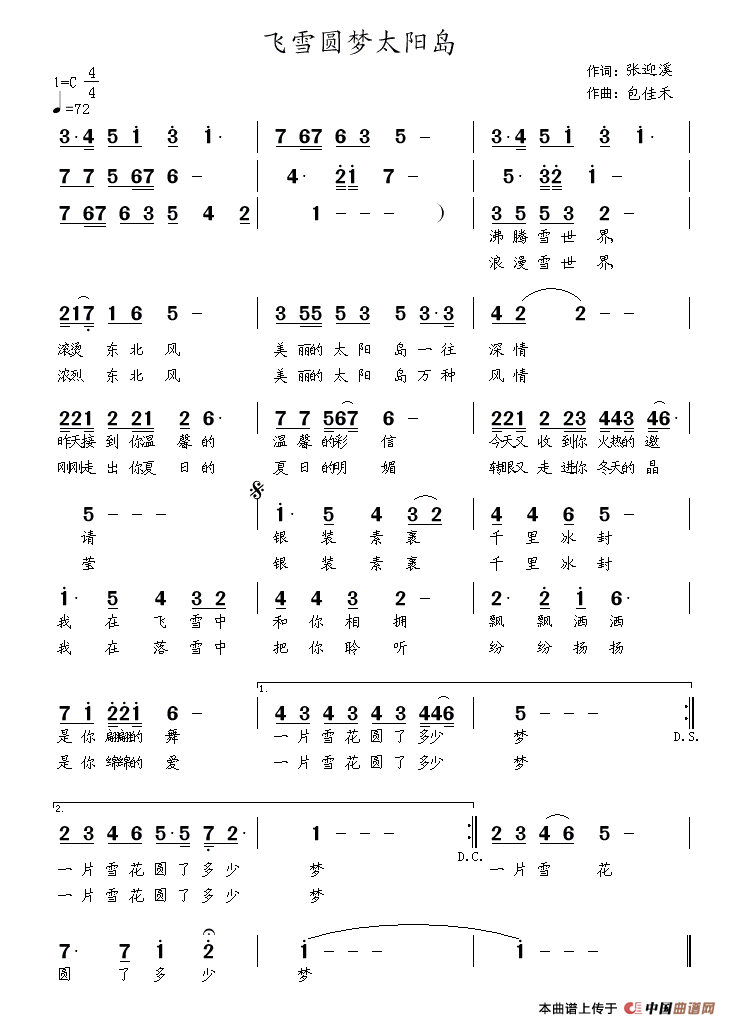 关于《飞雪圆梦太阳岛》曲谱的评论