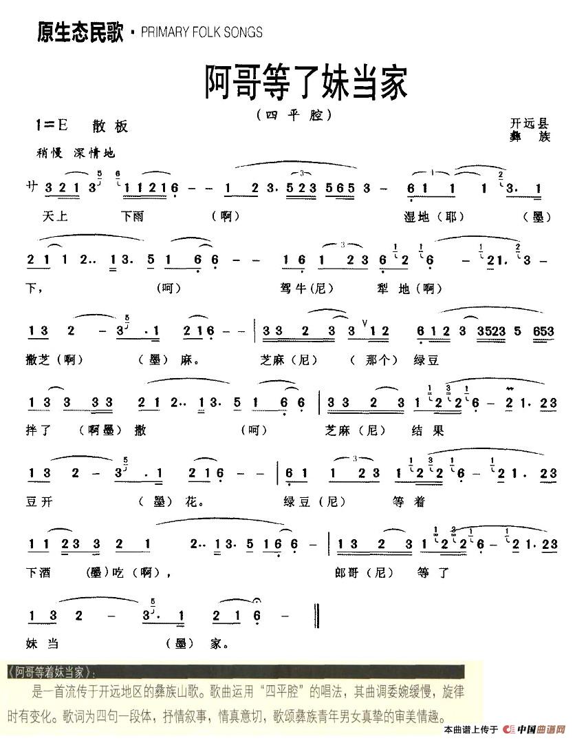 关于《阿哥等了妹当家》曲谱的评论
