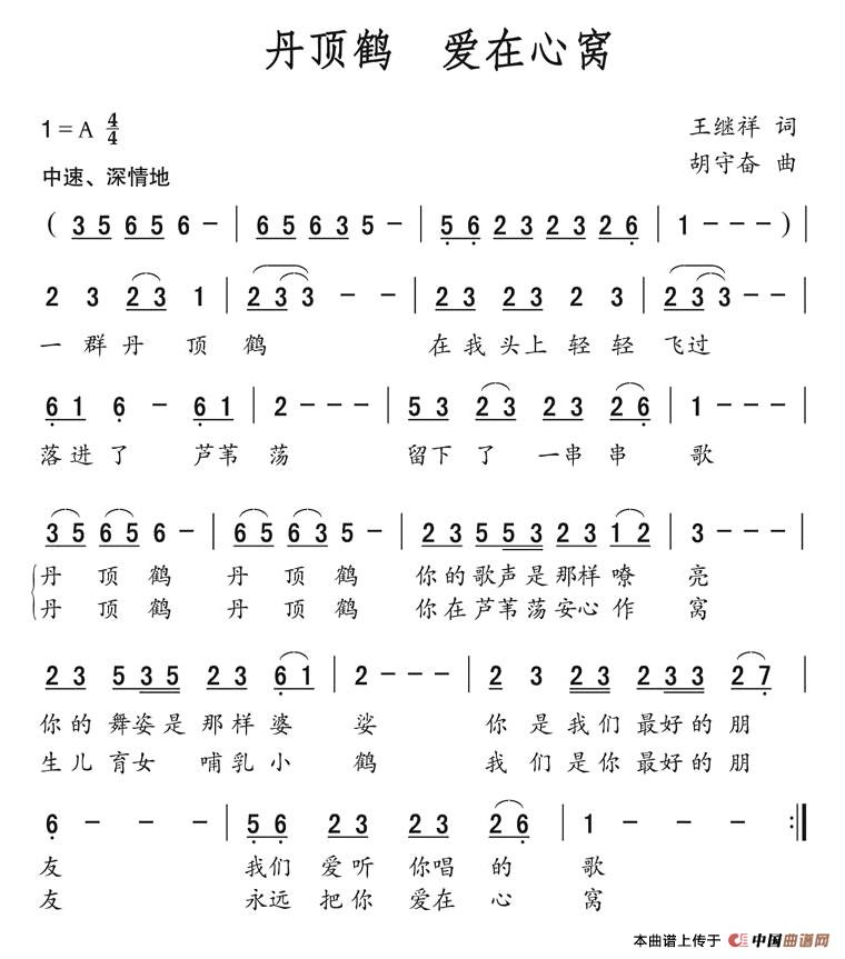 关于《丹顶鹤 爱在心窝》曲谱的评论