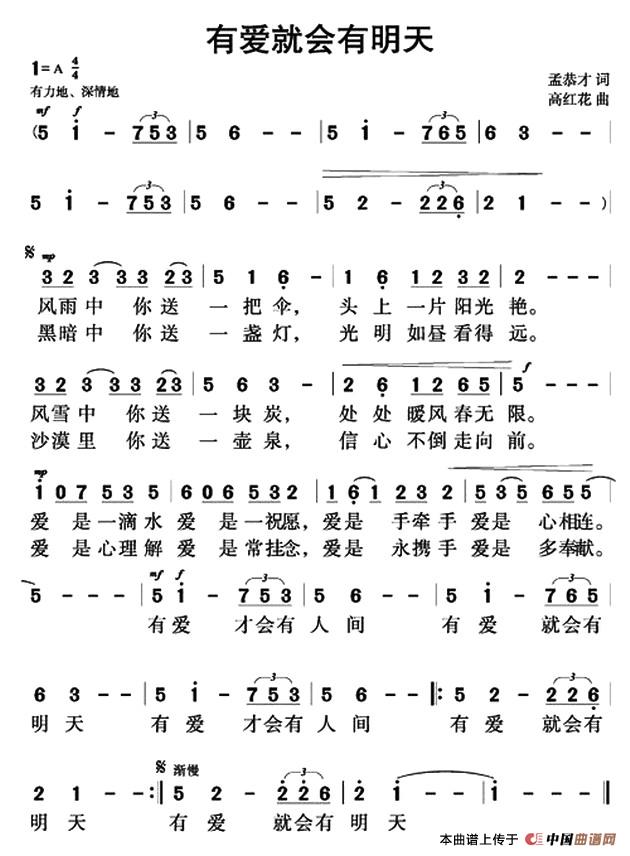 关于《有爱就会有明天》曲谱的评论