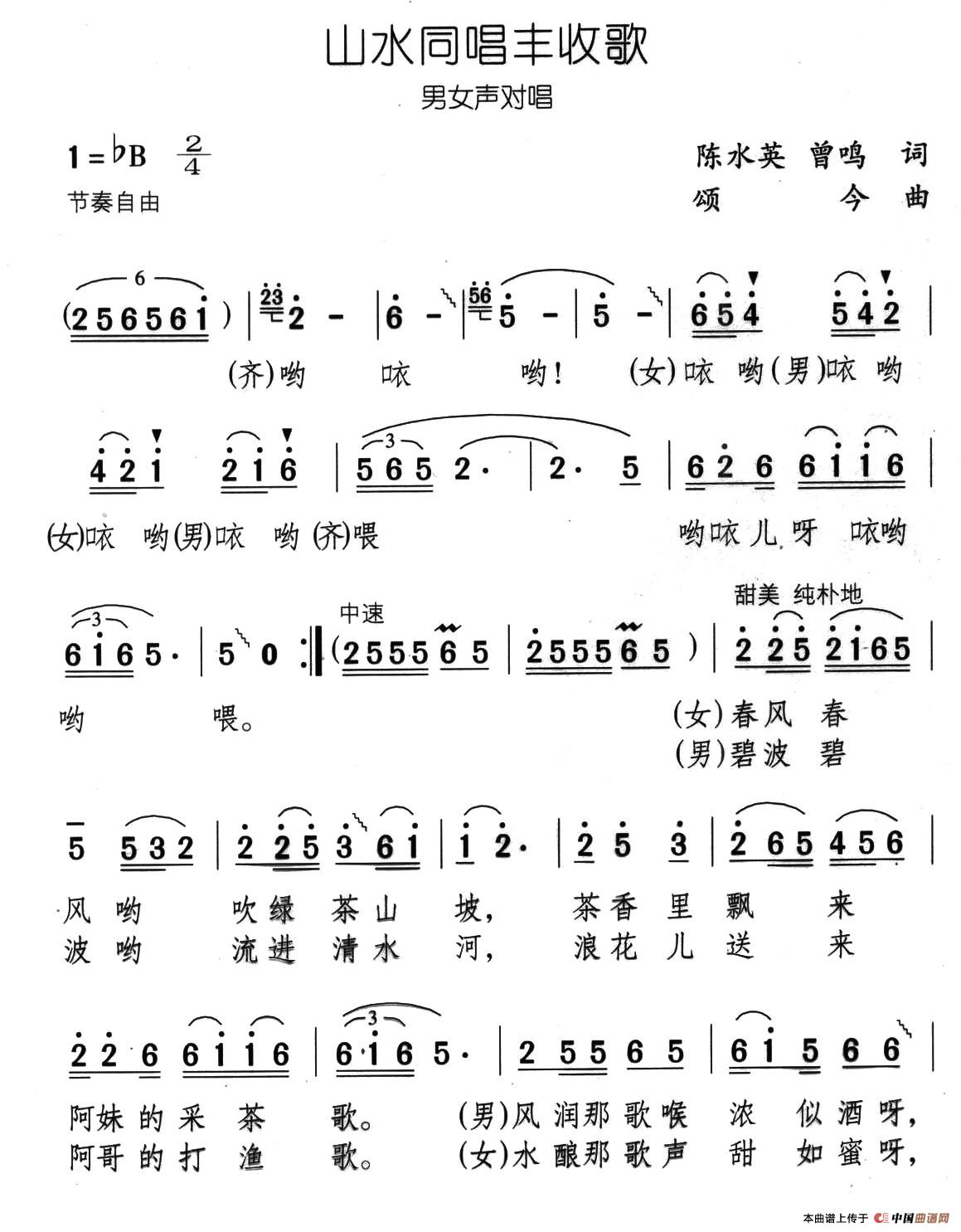 致谢:《中国曲谱网》衷心感谢作者老师馈赠原版歌谱!