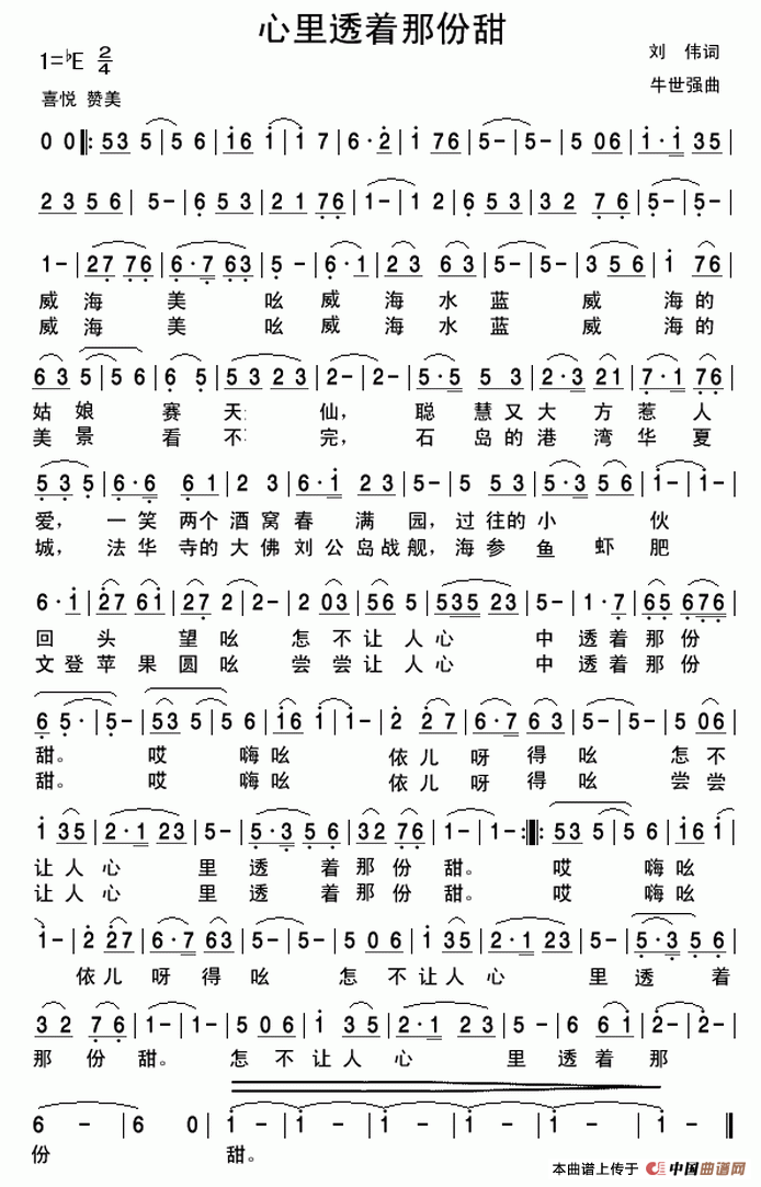 关于《心里透着那份甜》曲谱的评论