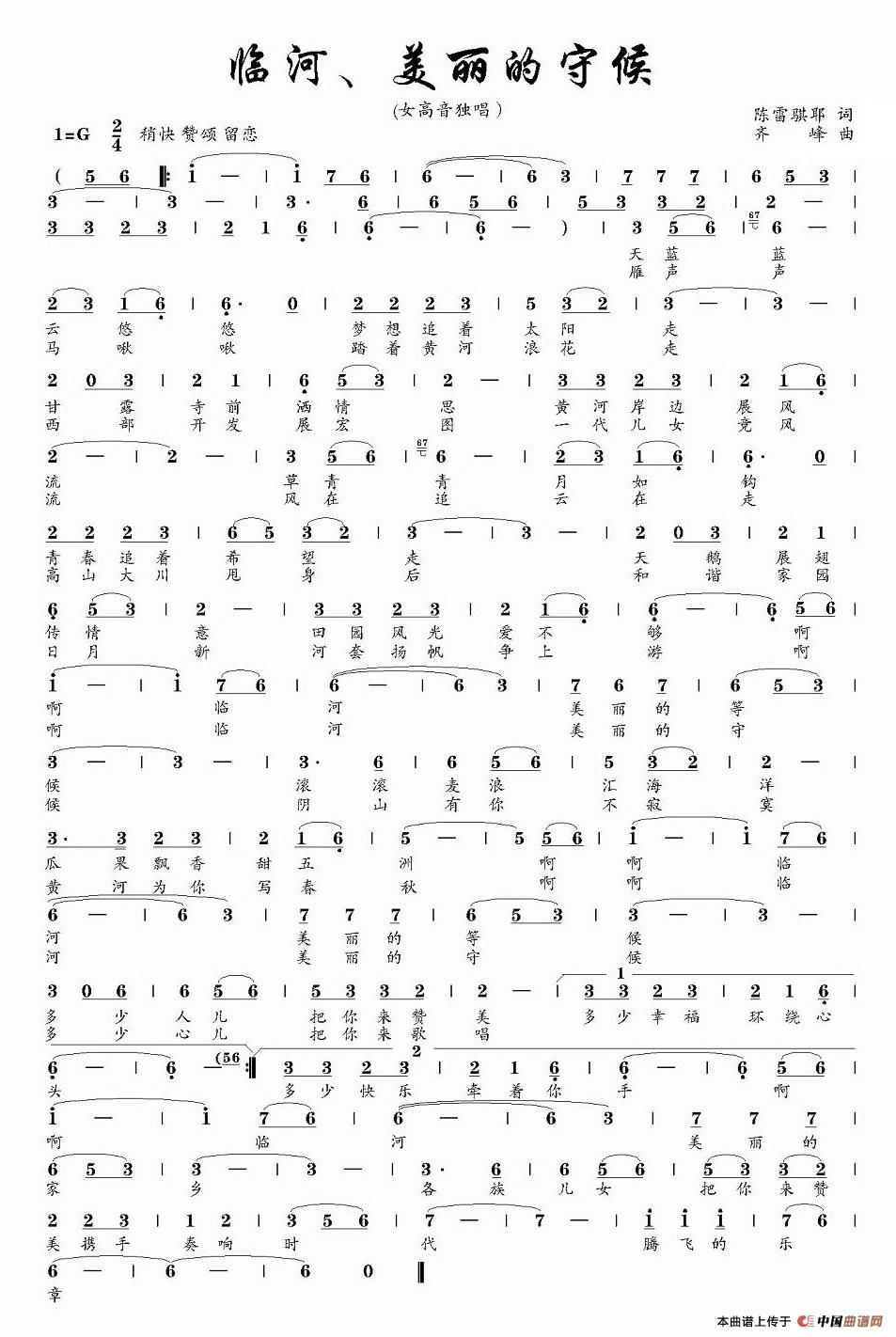 关于《临河,美丽的守候》曲谱的评论