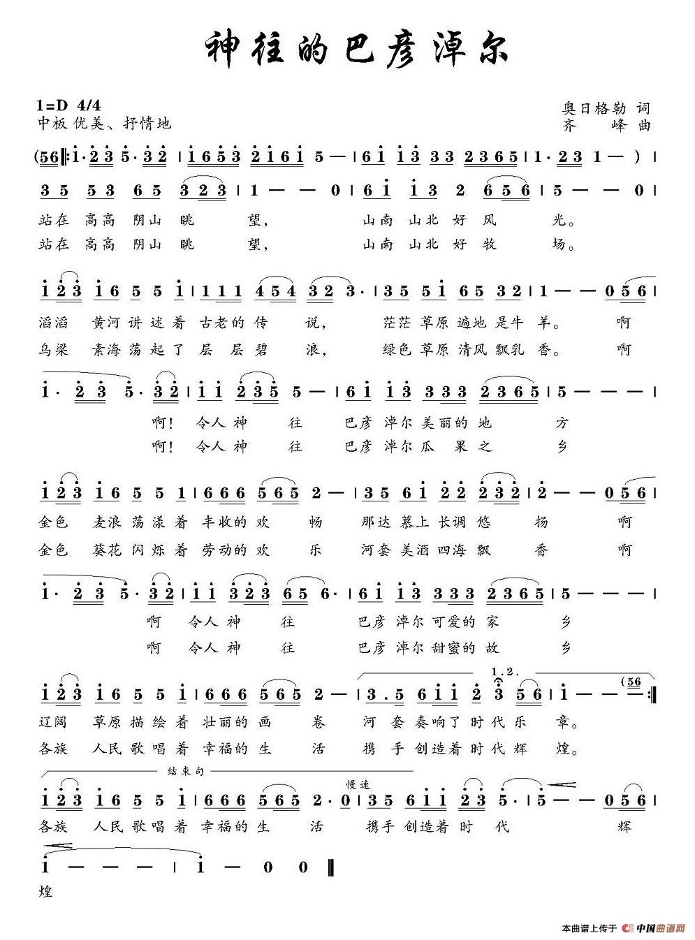 致谢:《中国曲谱网》衷心感谢作者老师馈赠原版歌谱!