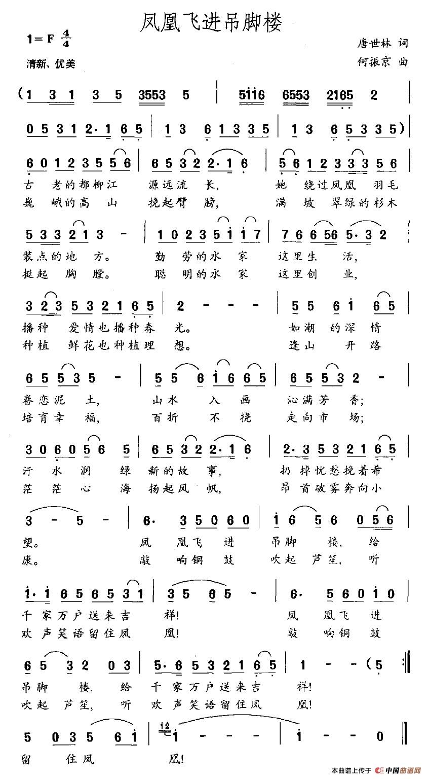 关于《凤凰飞进吊脚楼》曲谱的评论