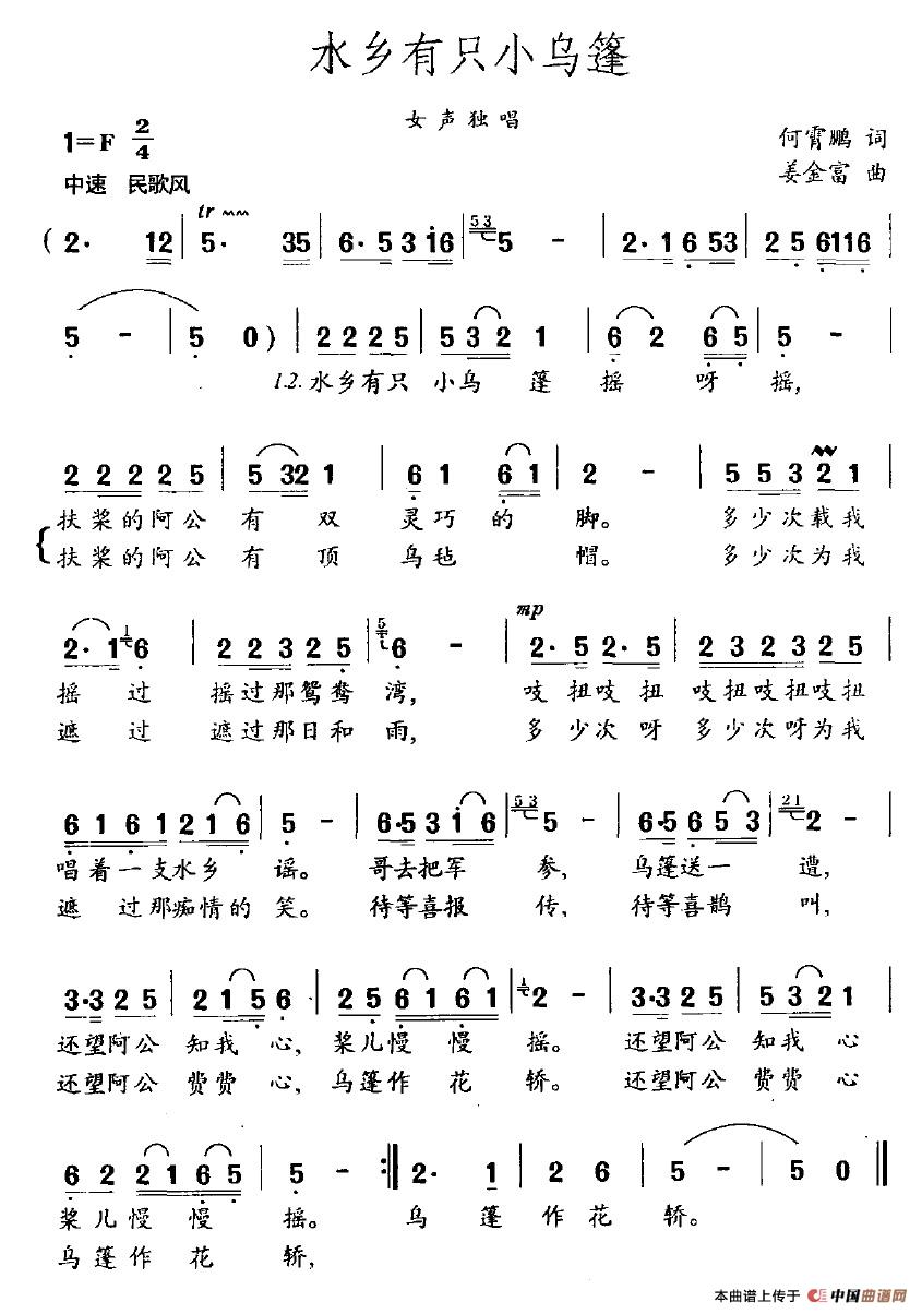 关于《水乡有只小乌蓬》曲谱的评论