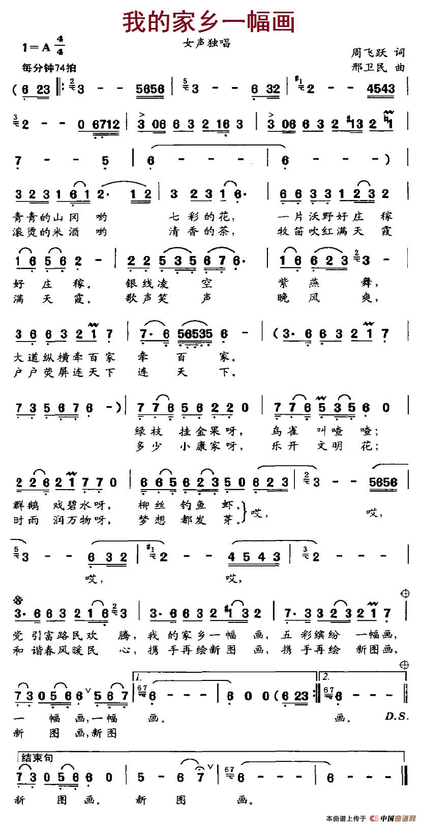 关于《我的家乡一幅画》曲谱的评论