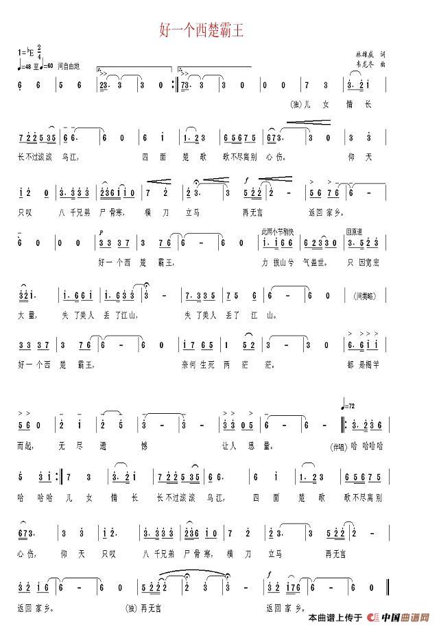 关于《好一个西楚霸王》曲谱的评论