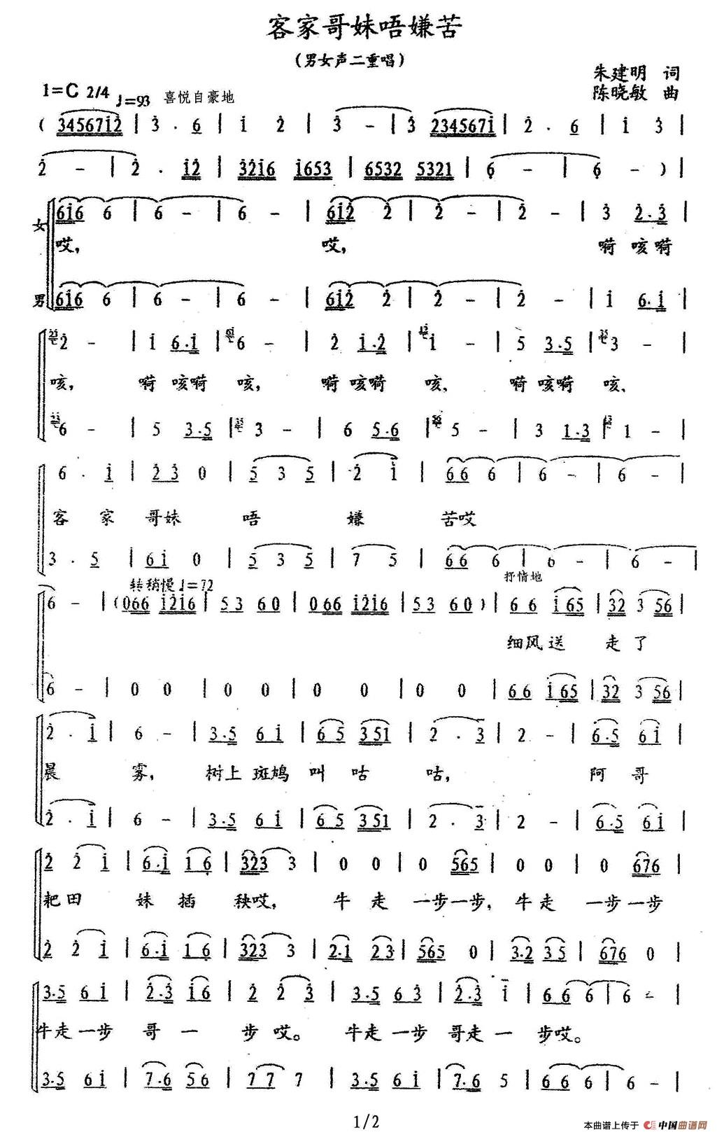 关于《客家哥妹唔嫌苦》曲谱的评论