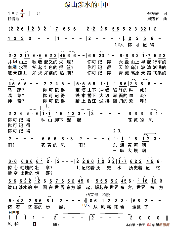 关于《跋山涉水的中国》曲谱的评论