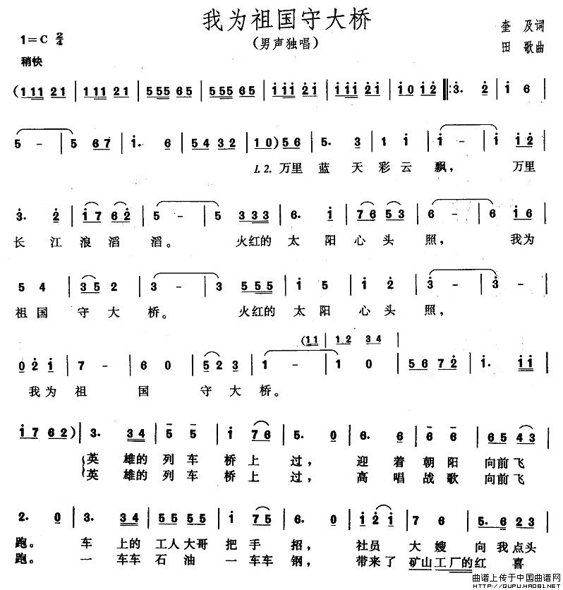 关于《我为祖国守大桥》曲谱的评论