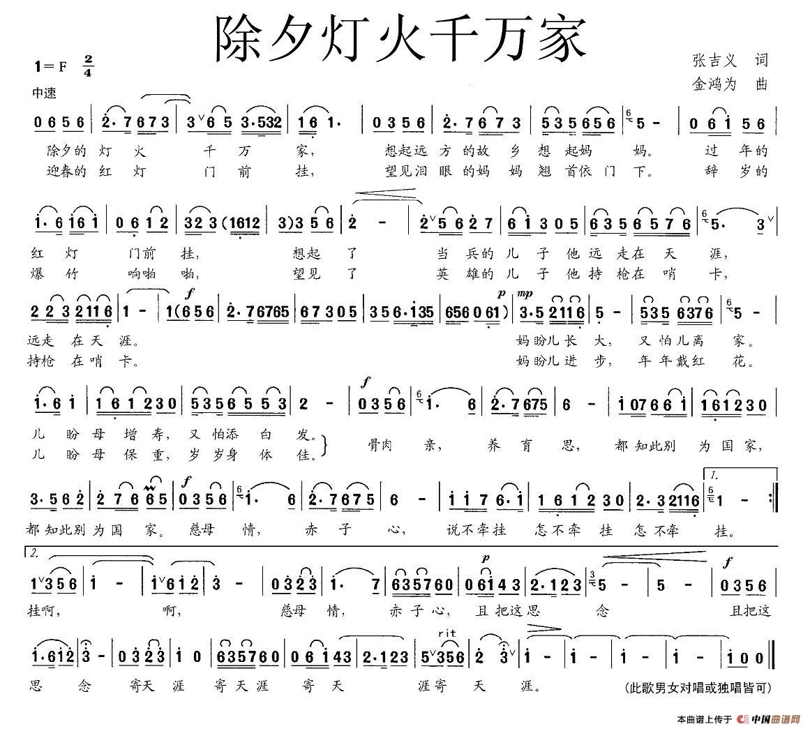 关于《除夕灯火千万家》曲谱的评论