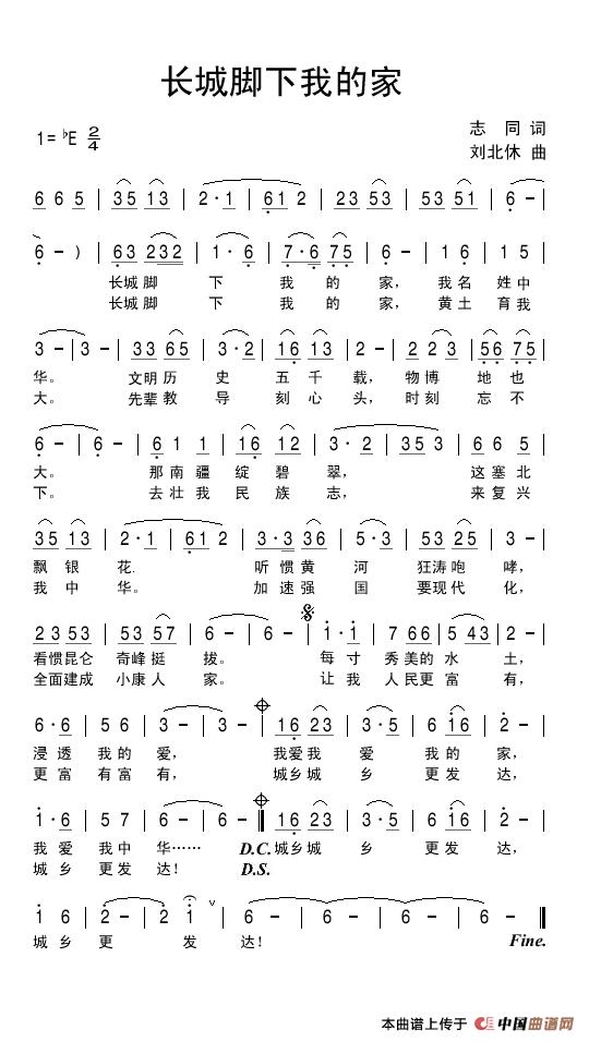 关于《长城脚下我的家》曲谱的评论