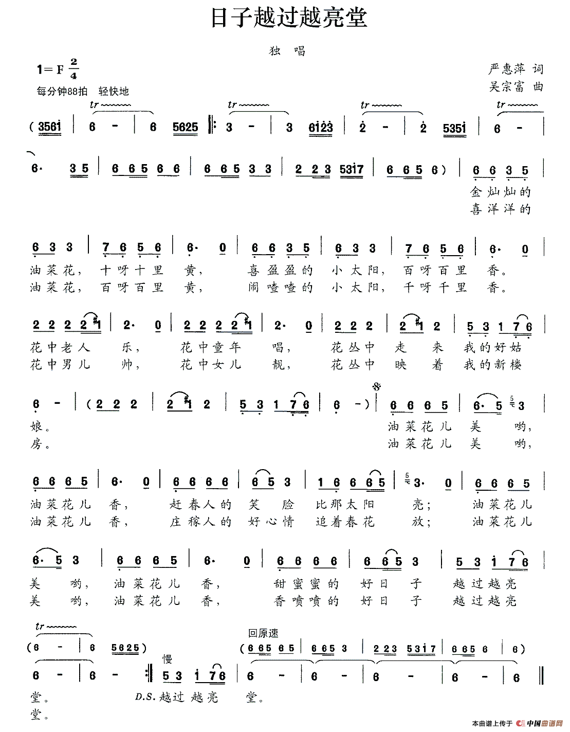 关于《日子越过越亮堂》曲谱的评论