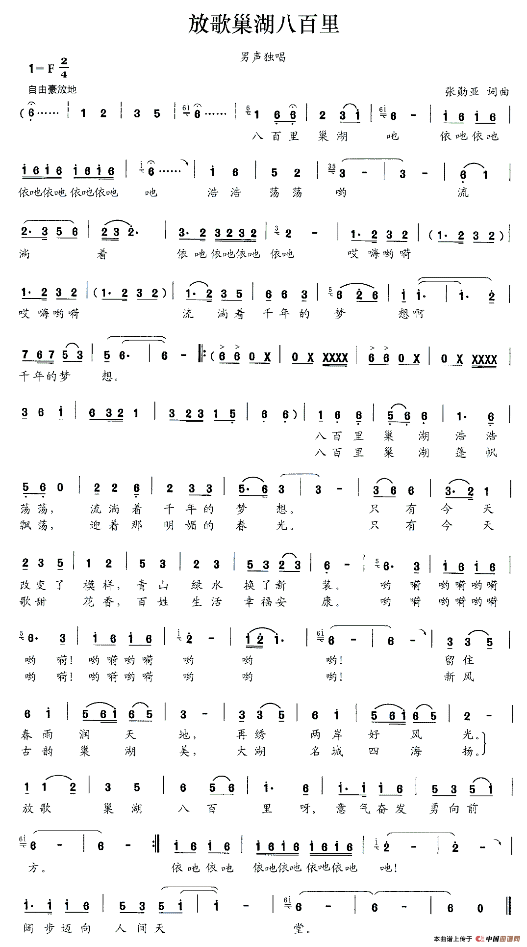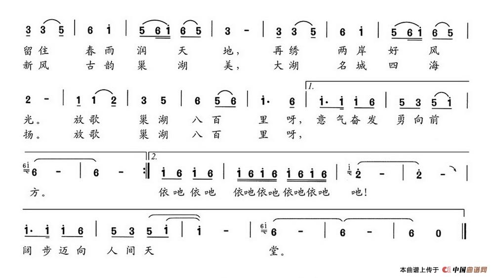 关于《放歌巢湖八百里》曲谱的评论