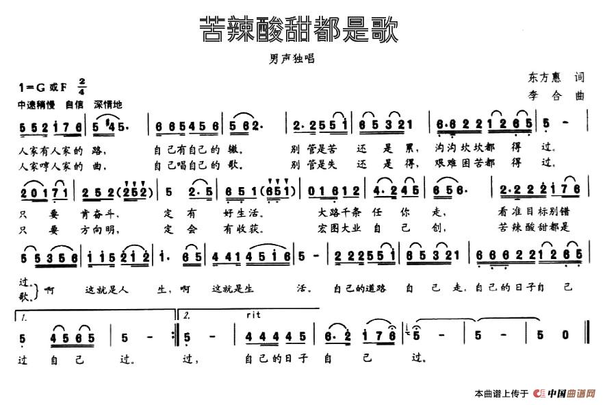 苦辣酸甜都是歌(东方惠词 李合曲)(1)_原文件名:15苦辣酸甜都是歌.jpg
