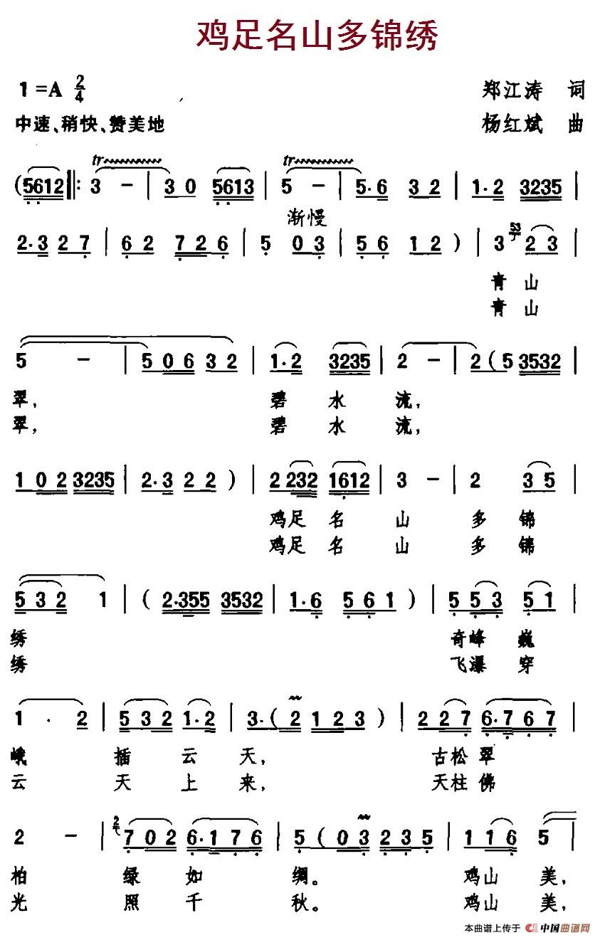 关于《鸡足名山多锦绣》曲谱的评论