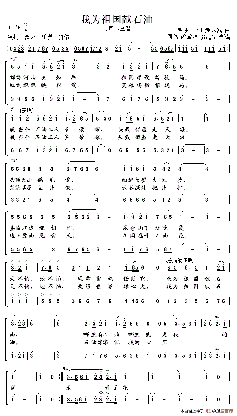 关于《我为祖国献石油》曲谱的评论