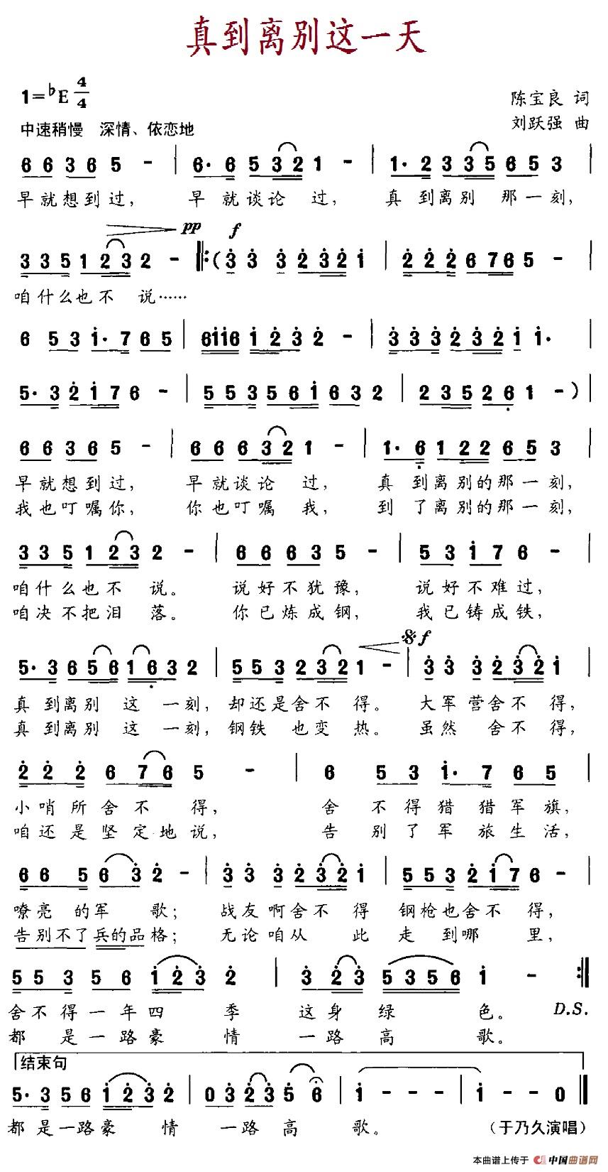 真到离别这一刻(陈宝良词 刘跃强曲)