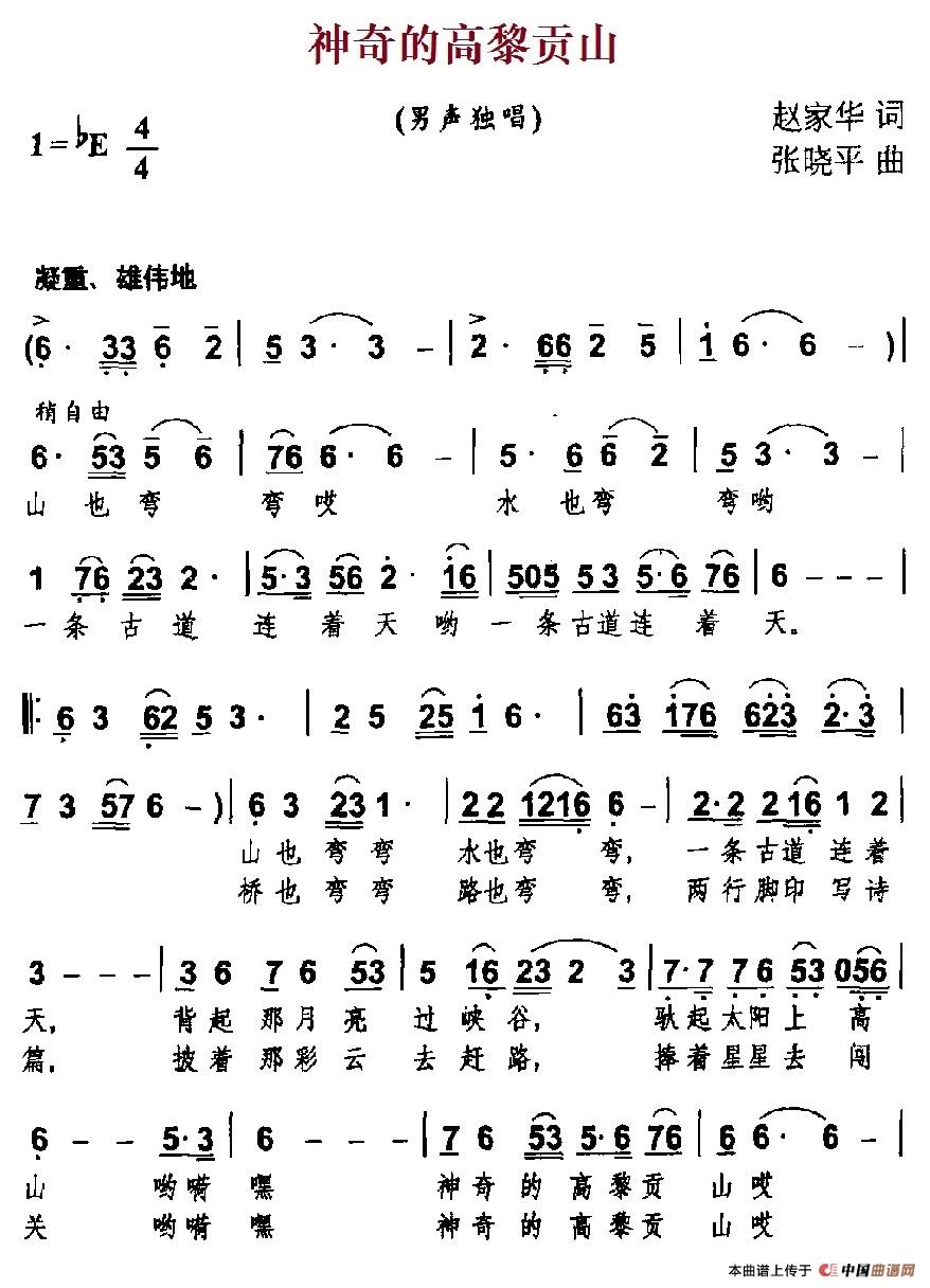 关于《神奇的高黎贡山》曲谱的评论