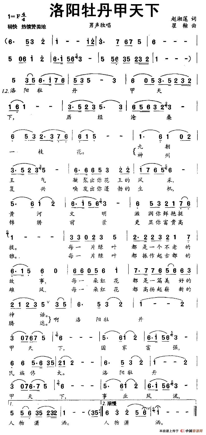 作词:赵湘莲 作曲:瞿翰 来源:《中国曲谱网》 上传:秋叶起舞