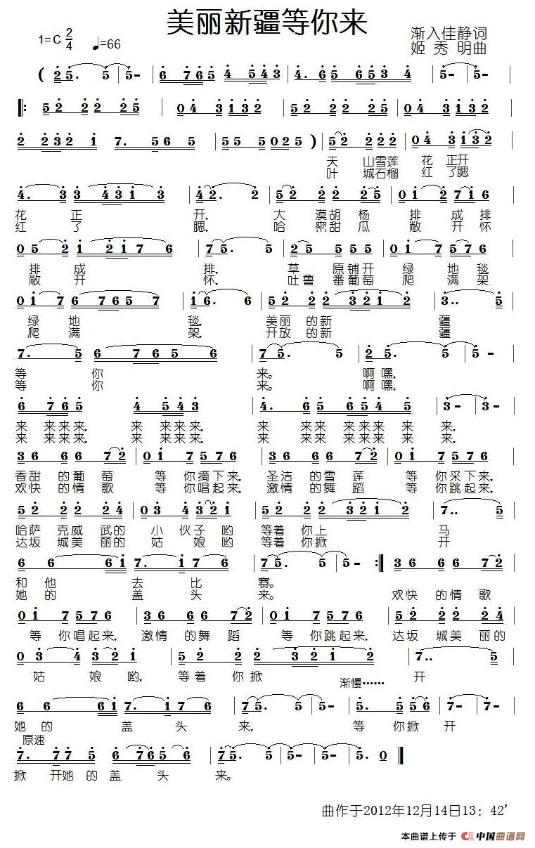 关于《美丽新疆等你来》曲谱的评论