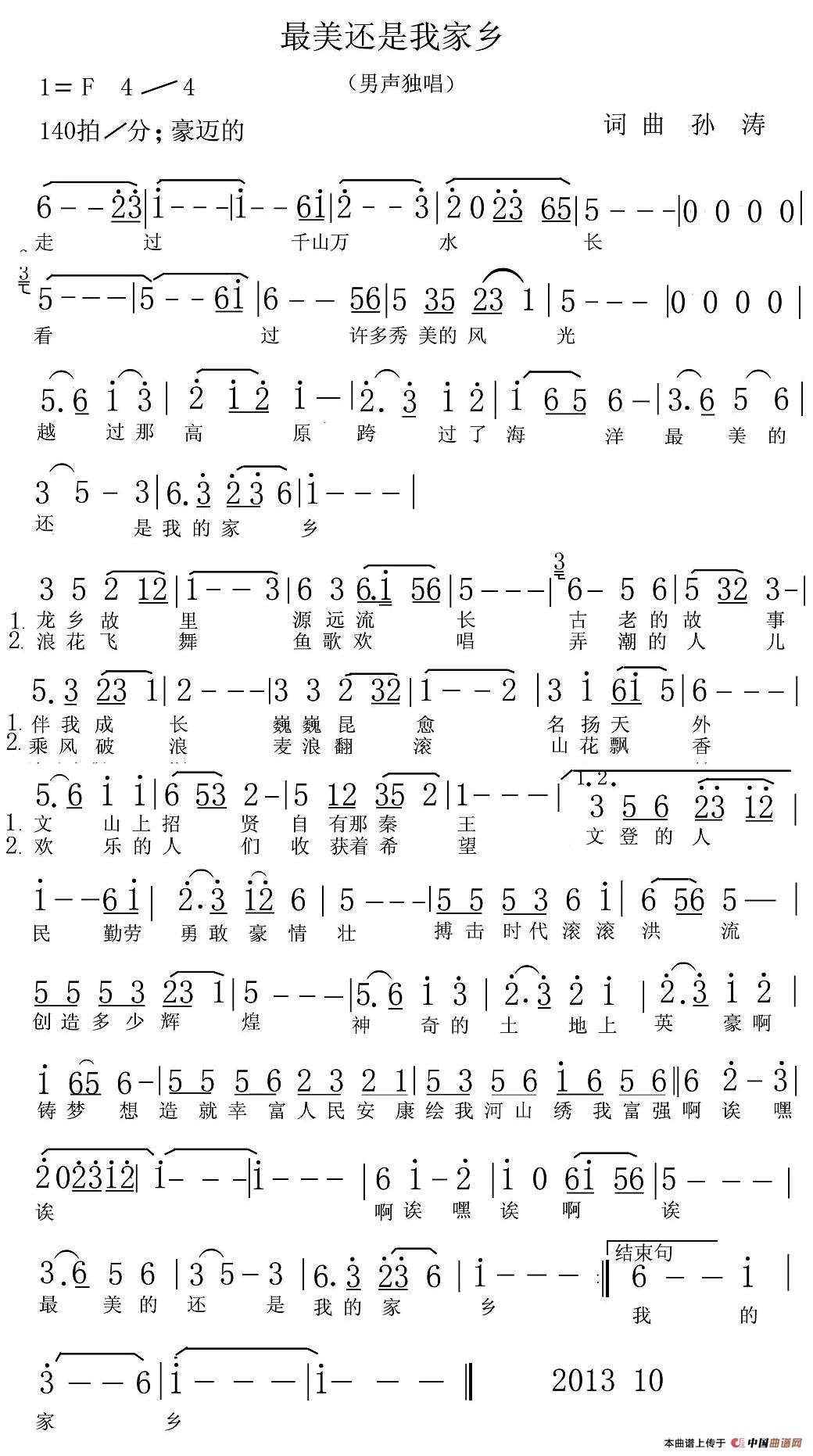 关于《最美还是我家乡》曲谱的评论
