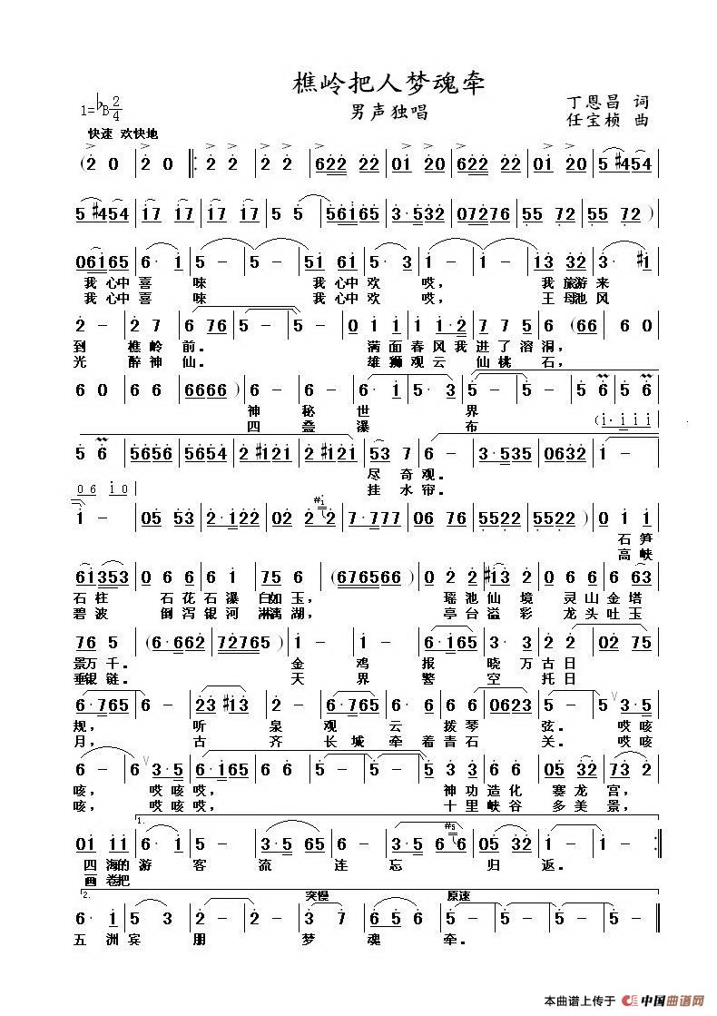 关于《樵岭把人梦魂牵》曲谱的评论