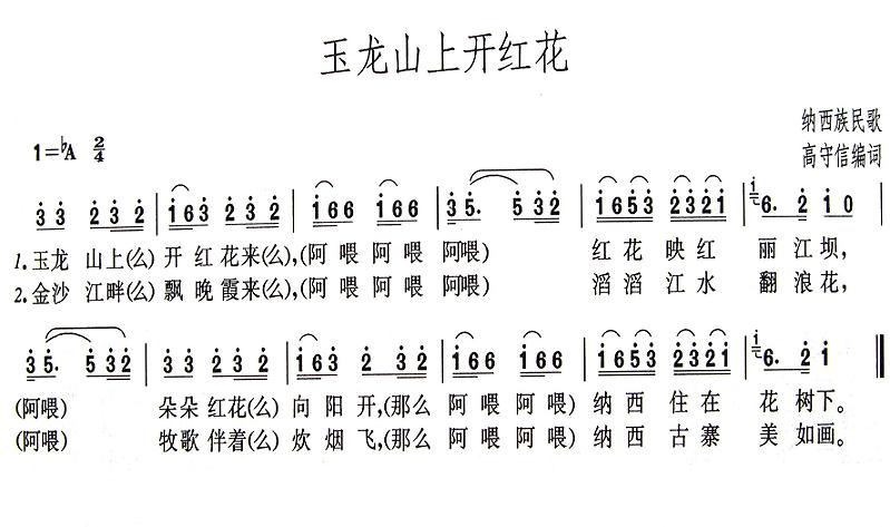 关于《玉龙山上开红花》曲谱的评论