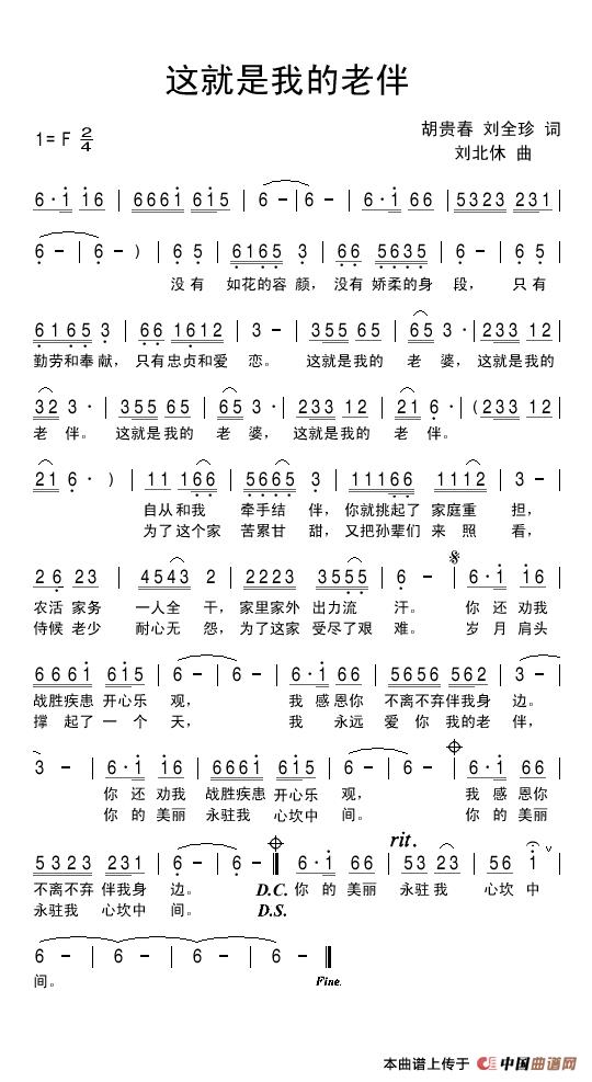 这就是我的老伴(胡贵春 刘全珍词 刘北休曲)