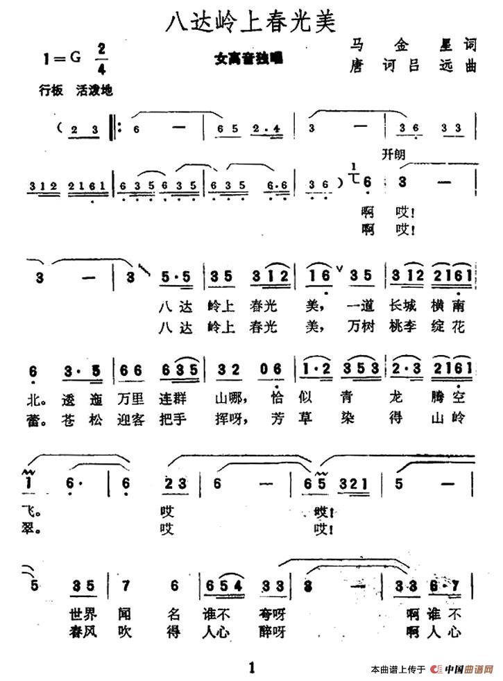 关于《八达岭上春光美》曲谱的评论
