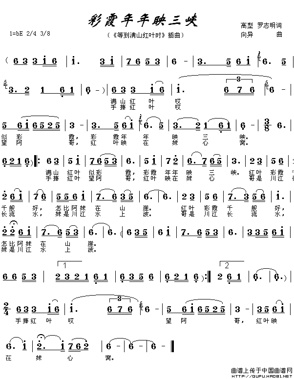 关于《彩霞年年映三峡》曲谱的评论
