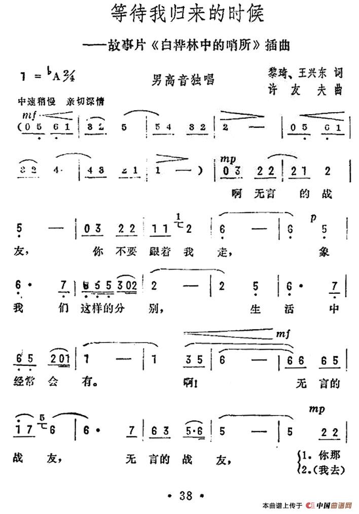 作词:黎琦 王兴东 作曲:徐友夫 来源:《电影电视歌曲选·5》 上传:秋叶起舞