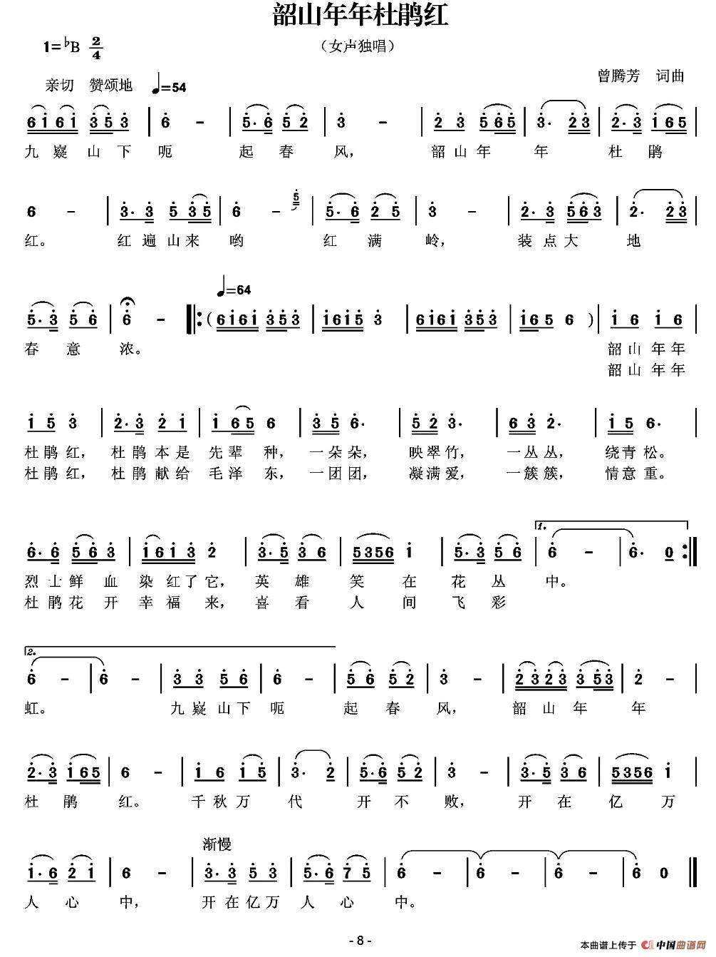 今天,是伟大领袖毛泽东诞辰120周年,感谢中国曲谱网将《韶山杜鹃年年红》连续三天放在头条版面,作重点歌曲推荐。也希望大家喜爱这首歌 [回复]
