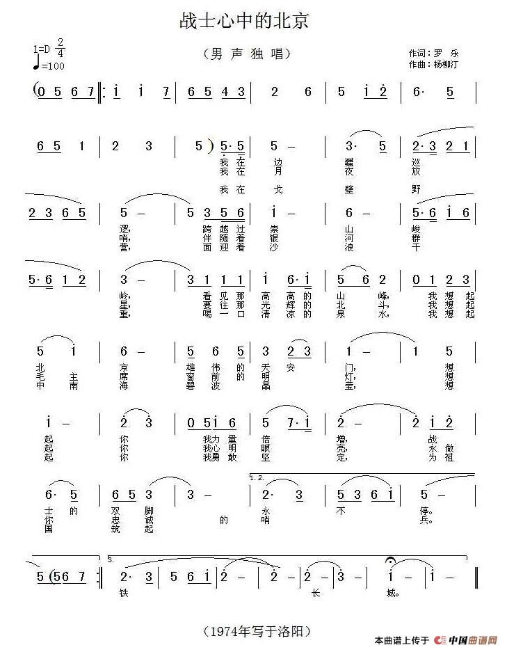 关于《战士心中的北京》曲谱的评论