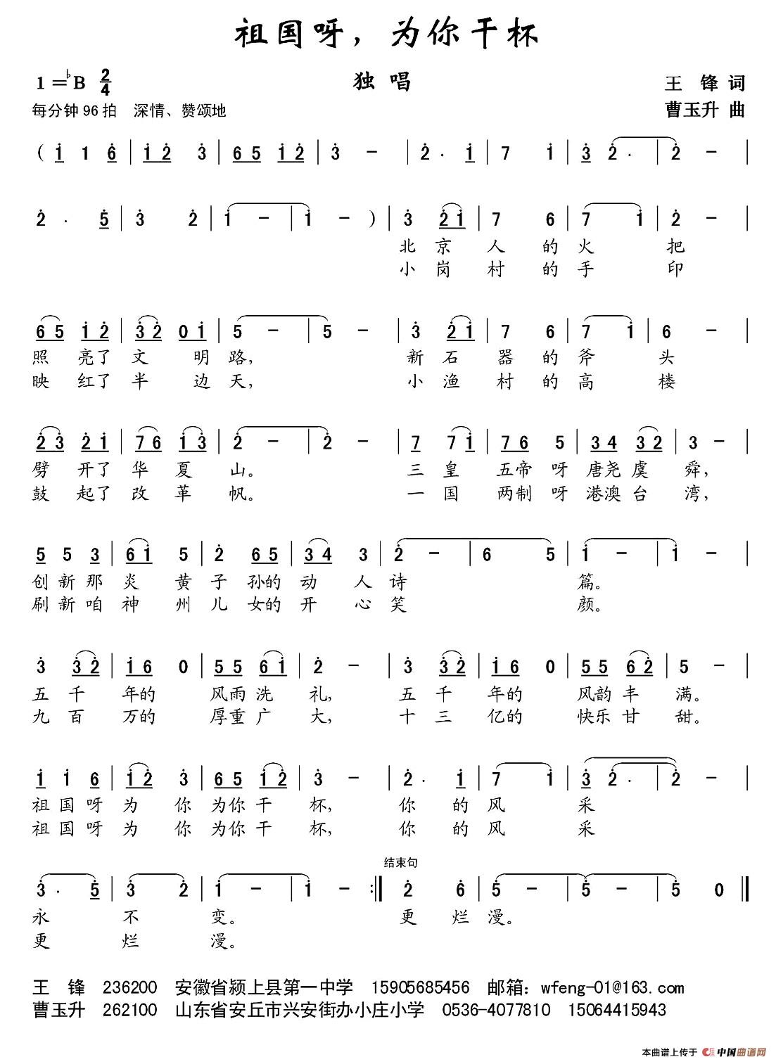 关于《祖国呀,为你干杯》曲谱的评论